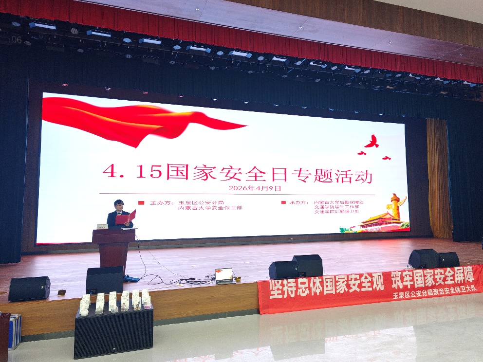 在国家安全教育日即将到来之际,4月9日下午,安全保卫部携手呼和浩特市公安局玉泉分局,共同举办了“统筹发展与安全,护航新征程”专题教育活动。此次活动吸引玉泉校区近1000名学生积极参与。